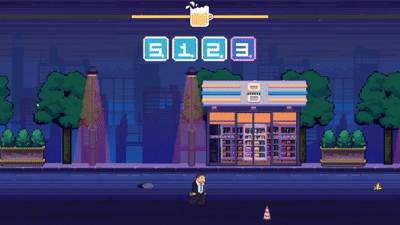 一个模拟醉酒行走为核心机制的2D横板移动游戏,玩家需要在不断错乱刷新的方向控制中前进,寻找关卡中的酒馆去喝更多酒来持续狂欢。